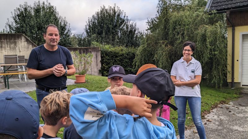 Die Schülerinnen und Schüler hatten sogar die Gelegenheit, bei der Zubereitung ihrer eigenen Jause mitzuwirken. Die Kinder wurden eingeladen, selbst ihre Butter herzustellen, die sie dann zusammen mit frisch gebackenem Brot und Schnittlauch aus dem Garten genießen konnten. Um die Jause abzurunden, wurde den Kindern der hauseigene Holundersaft serviert.