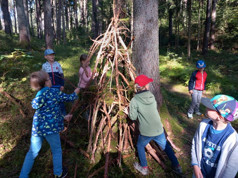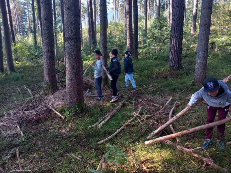 Nach einer leckeren Jause bauten die Kinder geniale Verstecke und Unterstände aus Ästen und Zweigen.