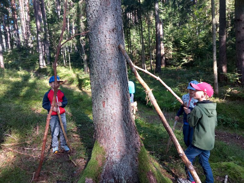 Am 21. September 2023 machten die drei ersten Klassen einen gemeinsamen Ausflug in den Wald. Die Kinder sammelten eifrig verschiedenste Waldschätze wie Steine, Moos, Farn, Zapfen, Blätter, Erde und Zweige. Alles wurde von den kleinen Forschern genauestens unter die Lupe genommen.