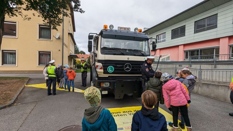 Im Anschluss an die Ausbildung lernten die Kinder auch, was der „Tote Winkel“ ist und welche Gefahren damit verbunden sind.