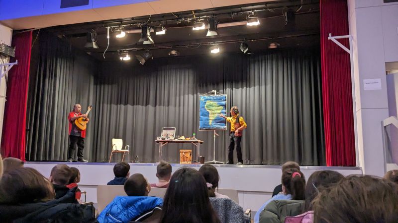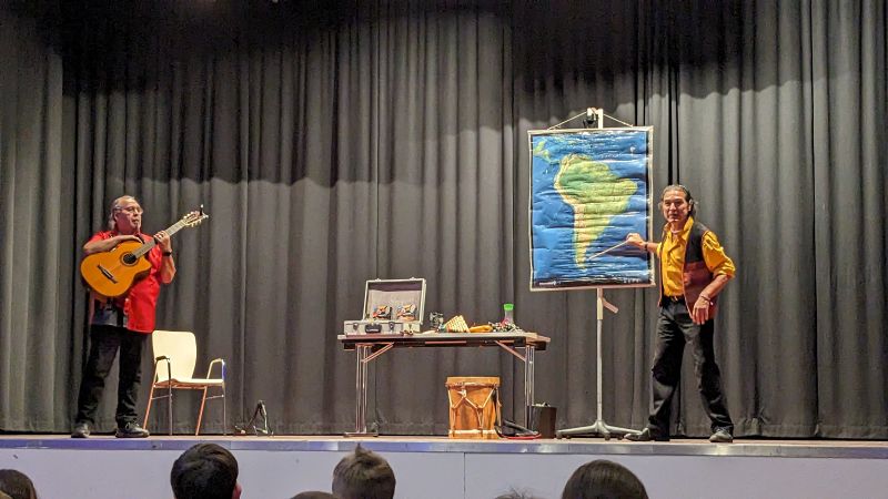 Eine musikalische und kreative Reise durch Südamerika boten uns zwei chilenische Musiker. Die Kinder erfuhren interessante Fakten über diesen riesigen Erdteil und lernten ebenso ein bisschen die spanische Sprache kennen.