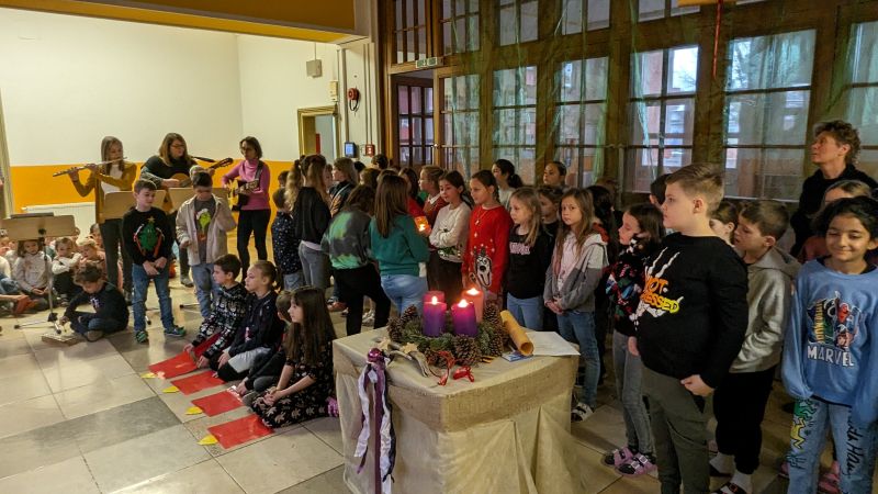 Zu vier stimmungsvollen Adventfeiern versammelten sich alle Schulkinder zusammen mit ihren Lehrpersonen in der festlich geschmückten Aula.