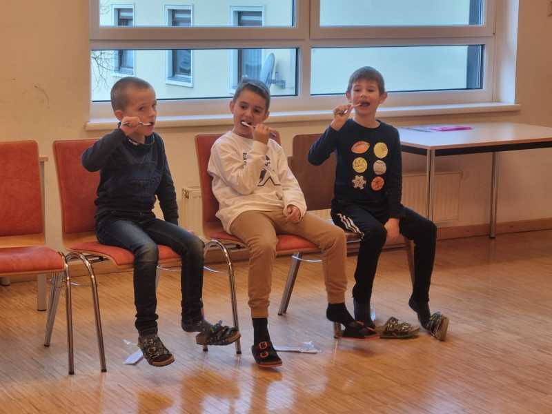 Jedes Kind erhielt zum Abschluss sogar eine neue Zahnbürste, mit welcher gleich die richtige Zahnputztechnik erlernt und trainiert wurde.