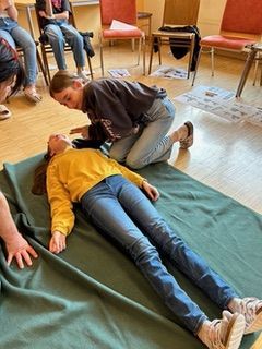 Im Gespräch und dem anschließenden Durchführen konnten alle ausprobieren, wie man Erste Hilfe leistet und das dies gar nicht so schwer ist.