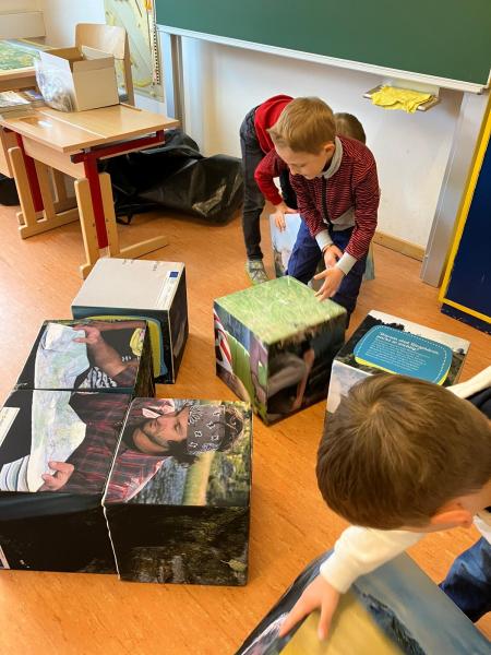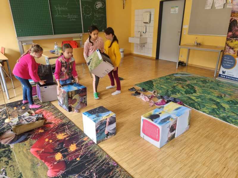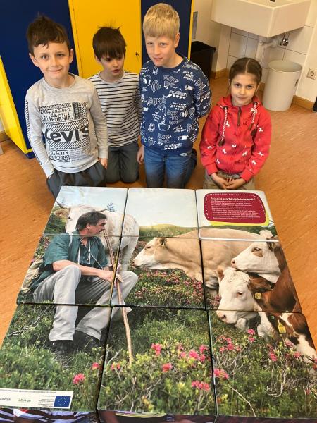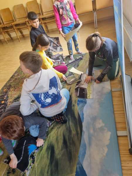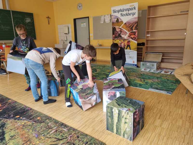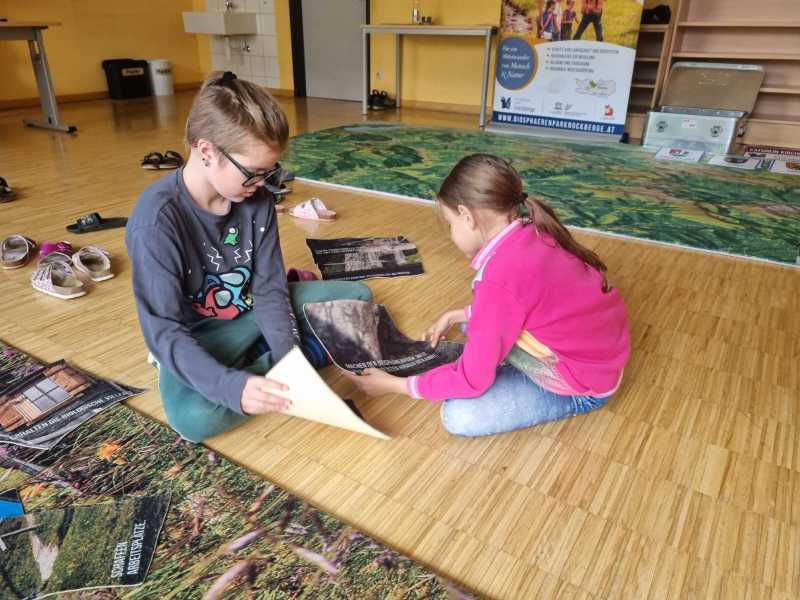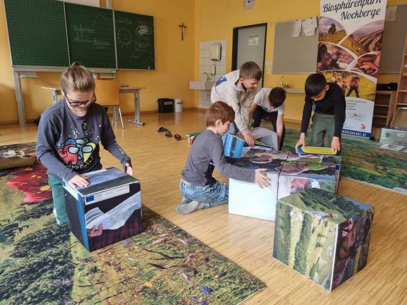 Zwei Ranger des Biosphärenparks Nockberge besuchten unsere Schule, um das Bewusstsein der Schüler für den alpinen Lebensraum und den Umweltschutz zu schärfen. Sie vermittelten auf spielerische Weise Wissenswertes über den Biosphärenpark. Auf riesigen Teppich-Landkarten erkundeten die Kinder in zwei Gruppen die Tier- und Pflanzenwelt sowie geologische Besonderheiten der Berge.