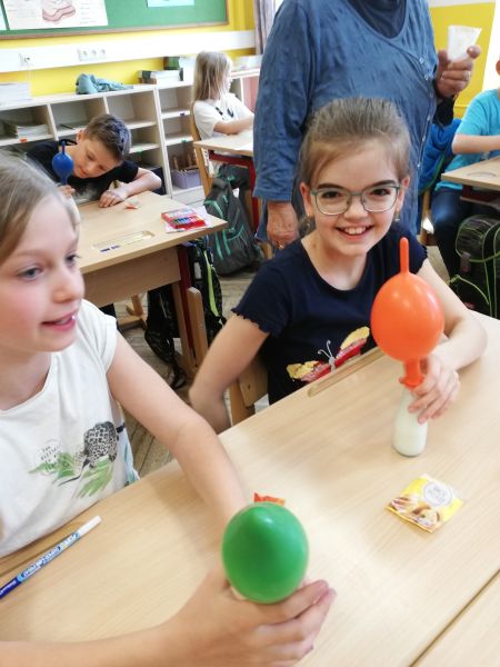 Im April besuchten Mag. Brigitte Lober und Frau Prof. Zechmann die 4a-Klasse, um mit den Schülerinnen und Schülern zum Thema Chemie durchzuführen. Mit diesen Experimenten soll das Interesse der Kinder geweckt werden. Wir bedanken uns herzlichst für den spannenden und kindgerechten Unterricht.