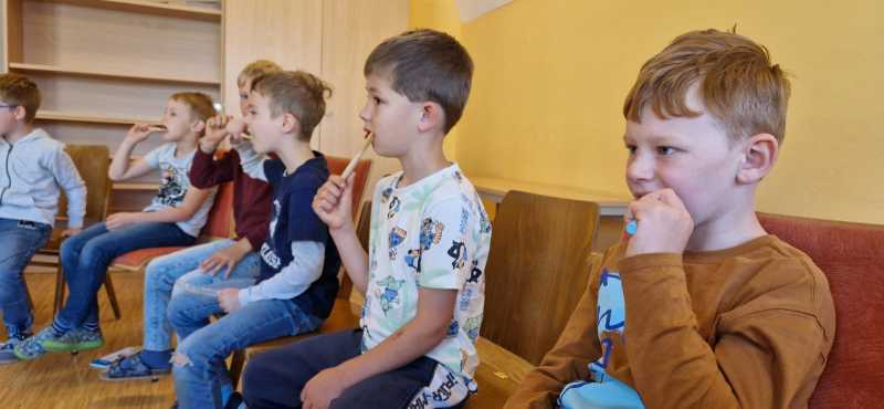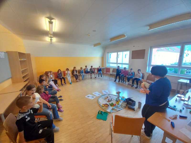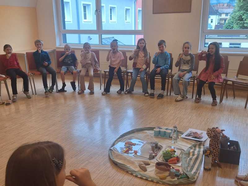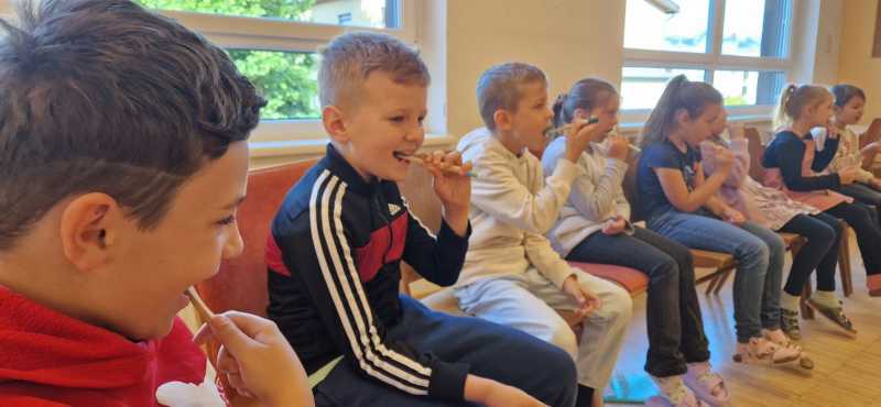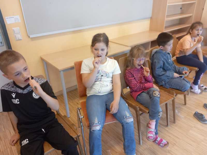 Dieses Mal wurde die Bedeutung der Ernährung für gesunde Zähne nähergebracht. Anhand vieler Anschauungsmaterialien erklärte sie viel Wissenswertes darüber, was zu einer gesunden Jause gehört und welche Lebensmittel eher vermieden werden sollten.