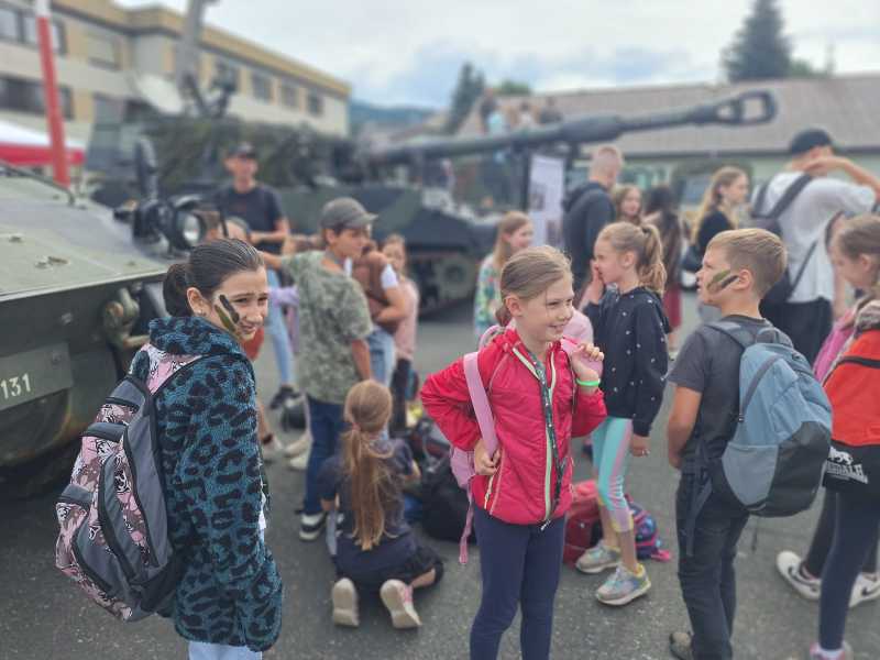 Ein Höhepunkt war die Präsentation der verschiedenen Panzerfahrzeuge. Die Kinder hatten die Gelegenheit, die beeindruckenden Maschinen aus nächster Nähe zu betrachten. Einige durften sogar in die Panzer einsteigen.