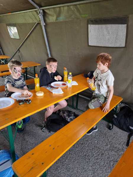 Ein besonderes Highlight war das Grillen von Marshmallows am Lagerfeuer. Unter Anleitung der Soldaten durften die Kinder ihre Marshmallows selbst am Feuer rösten.
