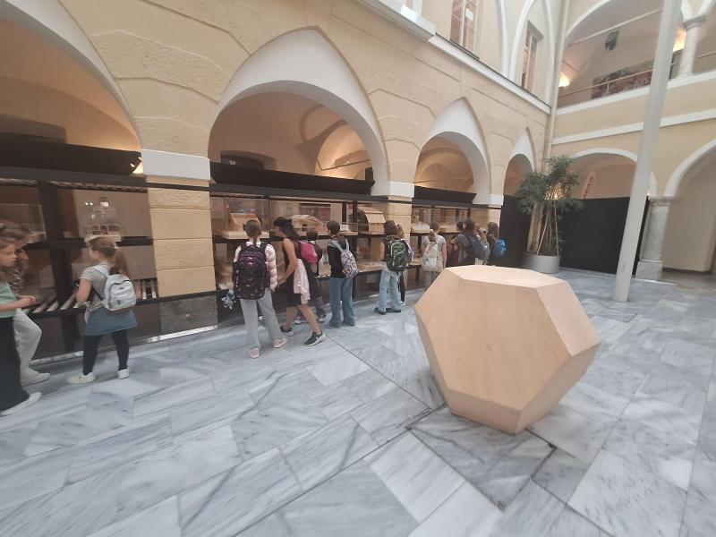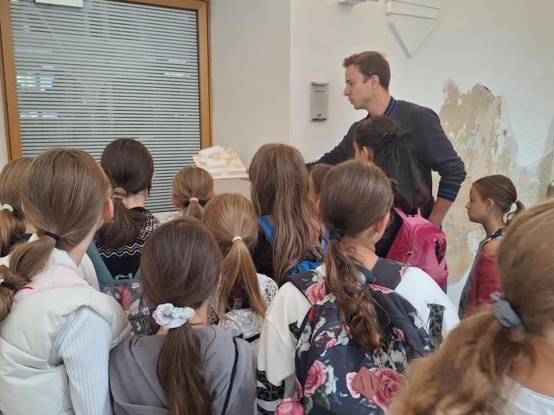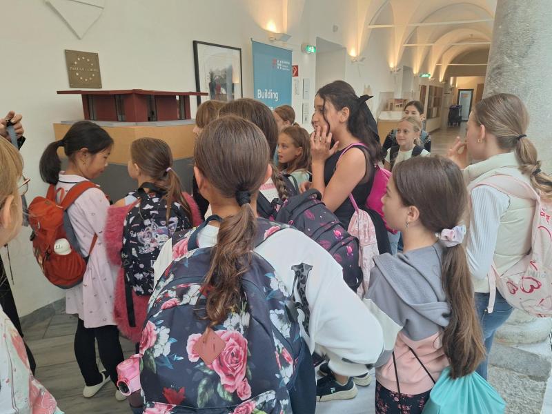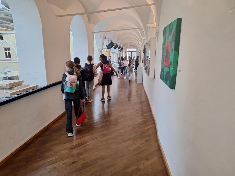 Nach einer herzlichen Begrüßung durch Julian (Architekt/FH Spittal) und Sandra (Verein „EqualiZ“) konnten wir die in der Aula ausgestellten Modelle verschiedener Bauwerke betrachten. Über die imposante offene Treppe wurden wir in den ersten Stock in den für uns vorgesehenen Unterrichtsraum gebracht.