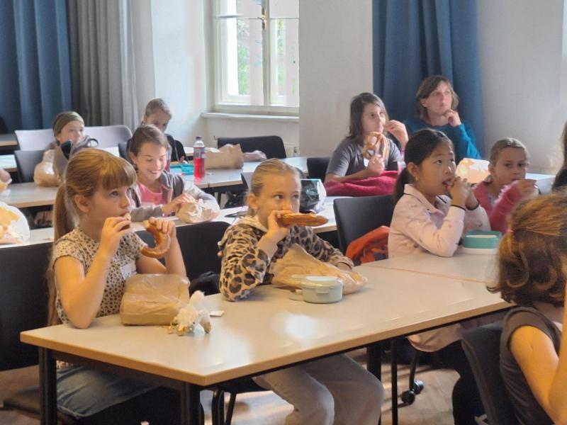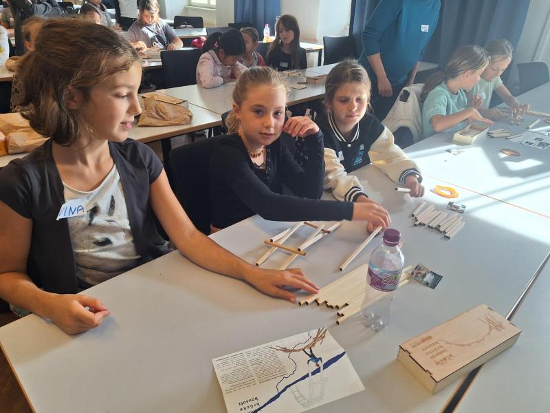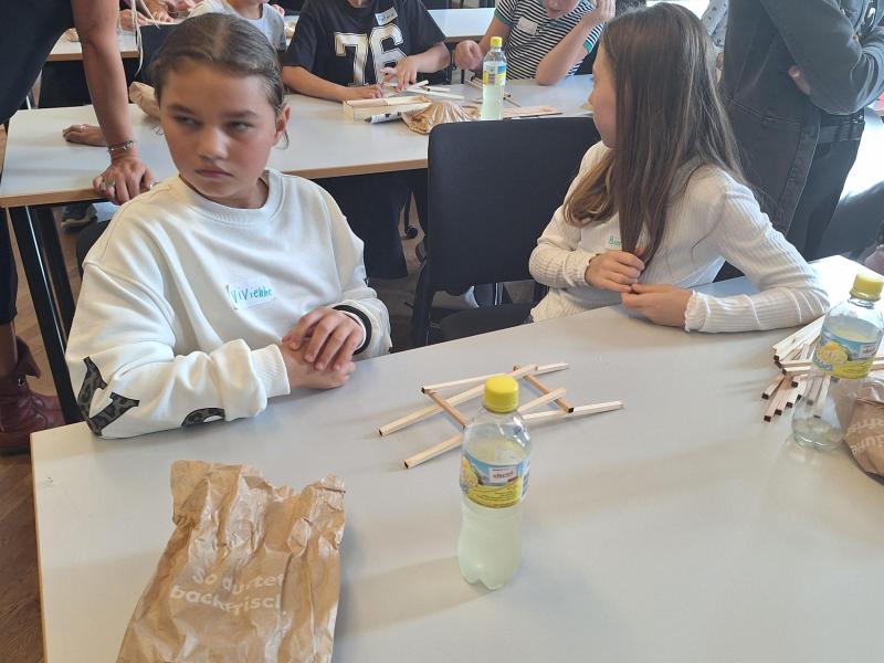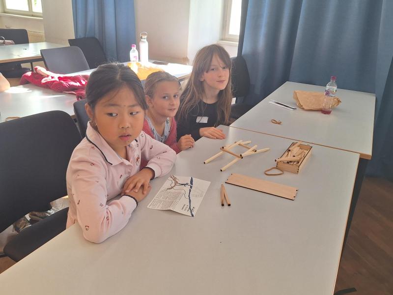 Nach einer kleinen Stärkung durften wir in Teamarbeit ein kleines Modell der Leonardo-da-Vinci-Brücke aus Holzstäben konstruieren. Mit großer Begeisterung, Geschick und Ausdauer gelangen viele interessante Werke.