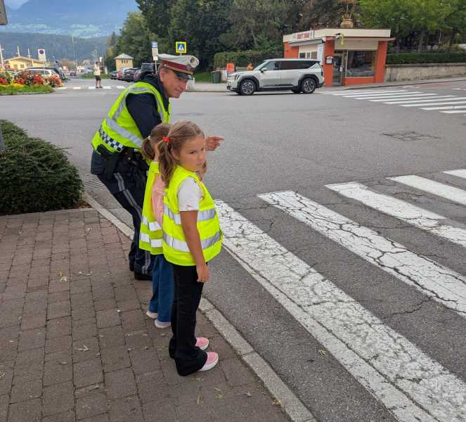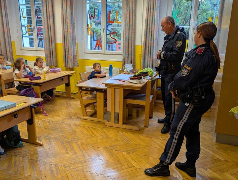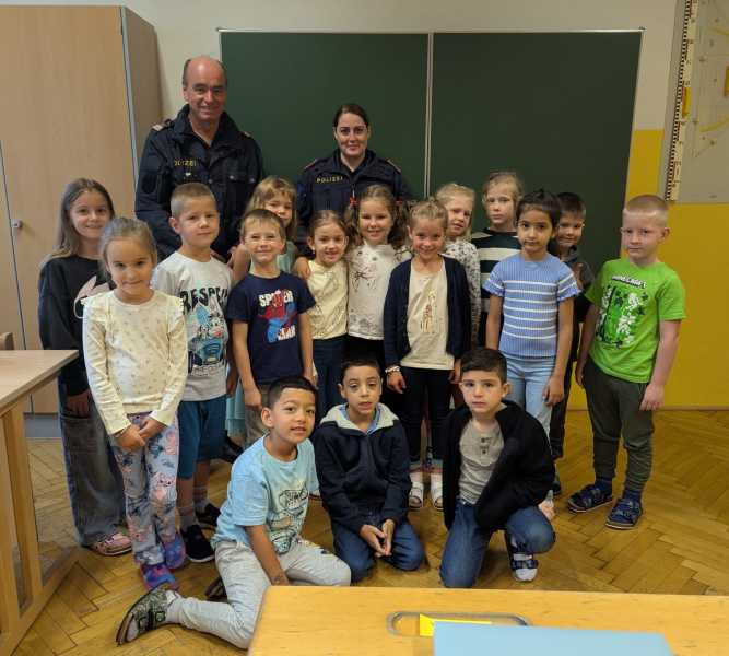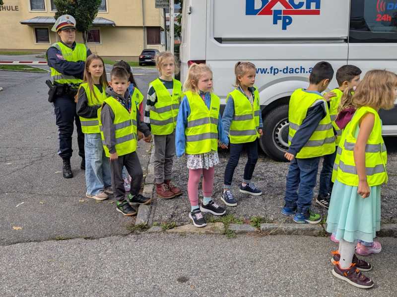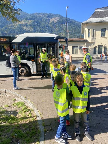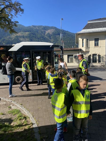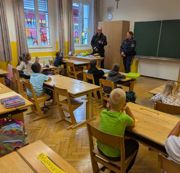 Gleich nach Schulbeginn besuchte uns wieder die Polizei mit Gruppeninspektor Reinhold Grutschnig und seinem Team, um den Kindern wertvolle Tipps zum sicheren Verhalten im Straßenverkehr zu geben.