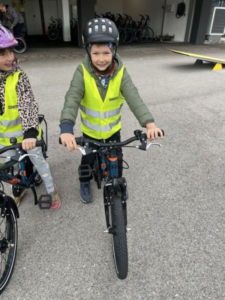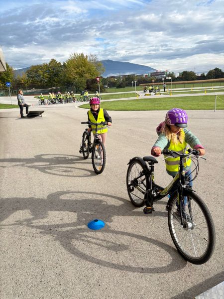Die 4. Klasse nutzte das Gelände zur Vorbereitung auf die bevorstehende Radfahrprüfung – ebenfalls mit einer Kombination aus praktischen Übungen und theoretischer Vertiefung.