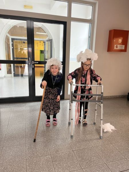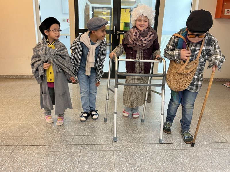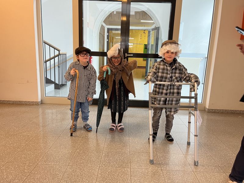 Außerdem verkleideten sie sich als 100-Jährige, zeichneten sich selbst heute und in 100 Jahren, gestalteten 100er-Monster und arbeiteten mit der 100er-Tafel.