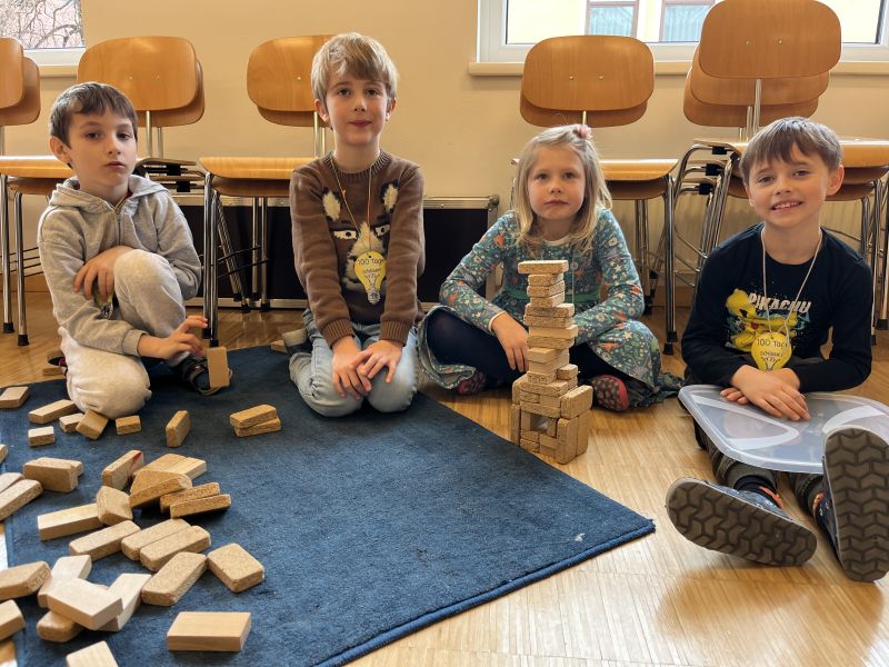 Die Kinder sammelten 100 Wünsche, bauten Bauwerke aus 100 Teilen und legten eine 100er-Kette.