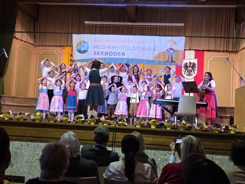 Das Programm war abwechslungsreich und mitreißend: Den Beginn machte das Lied „Stachelschwein“, gefolgt von einem kreativen Beitrag, bei dem Märchen auf Rap trafen. Für beste Stimmung sorgte schließlich der „Gute-Laune-Song“ in einer besonderen Version, arrangiert von Angelika Gruber und begleitet von Sabina Sušnik und Jonathan (4a).