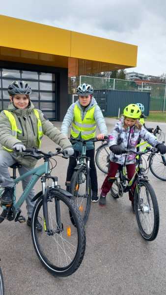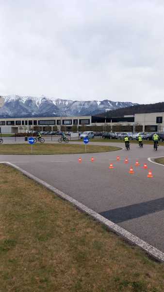 Die dritten Klassen meisterten einen Fahrradparcours und nahmen am Programm „Hallo Auto“ teil. Hier wurde besonders das richtige Verhalten im Straßenverkehr sowie das Einschätzen von Bremswegen geübt.